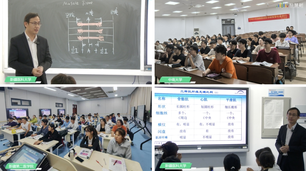 2025年9月29日,中南大学湘雅基础医学院联合新疆医科大学与新疆第二医学院,以智慧课程为引擎,以数字技术为桥梁,通过智慧树平台,精心组织以“肌组织”为主题的组织学与胚胎学课程“无界课堂”,顺利实现东西部同步相连。此次活动是“智慧西行”破壁首航,也标志着东西部高校在基础医学教育领域的协同创新正式落地生根。
